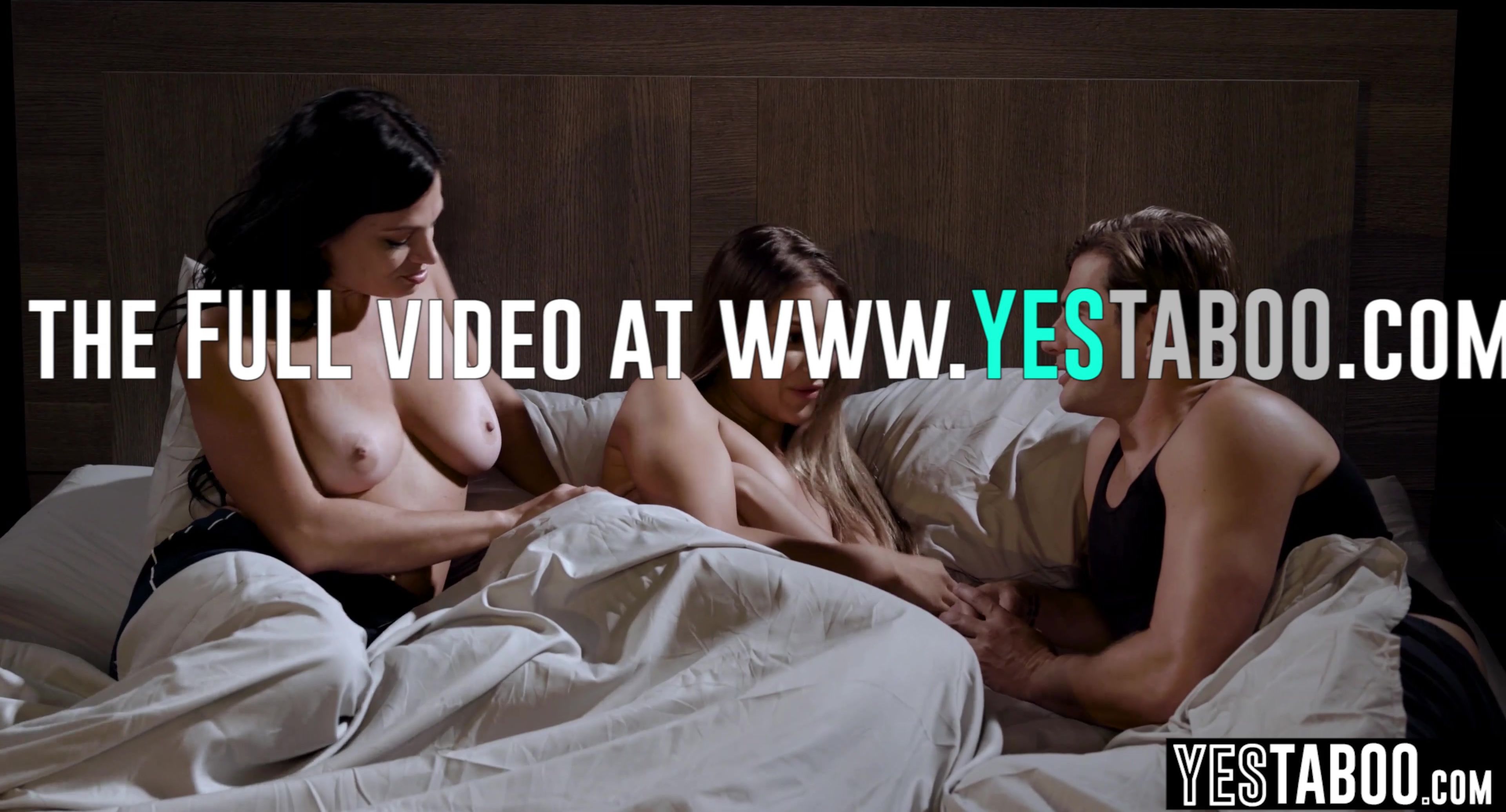 Big boobs curvy Middle Eastern MILF Mona Azar is staying over with her stepson and his petite Latina roommate Gizelle Blanco when she seduces the cutie and spreads her big ass to eat her out before making her big dick stepson rail them both in a threesome